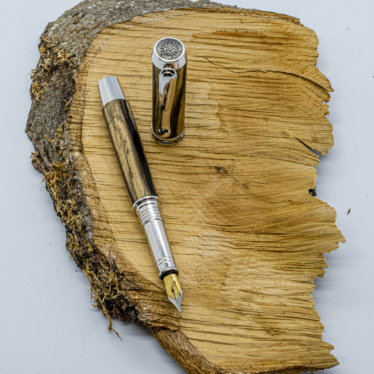 Der Füller ist mit einer hochwertigen in Deutschland gefertigten Feder (mit 22k Gold und Rhodium beschichtet) ausgestattet. Die hochwertig ausgeführte Iridium-Spitze sorgt für einen einwandfreien Tintenfluss und sanftes Gleiten der Feder.