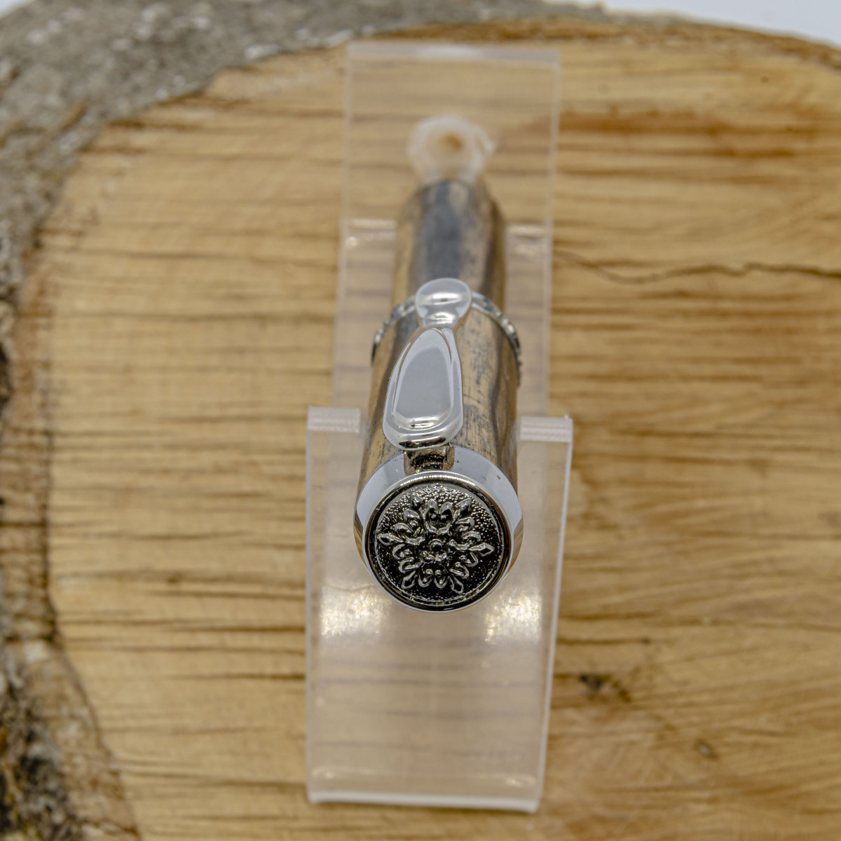 Die Ausstrahlung zwischen den farbigen Einsätzen und Zierbändern kombiniert mit der brillanten Rhodium-Oberfläche lassen diesen Schreiber von der breiten Masse abheben.