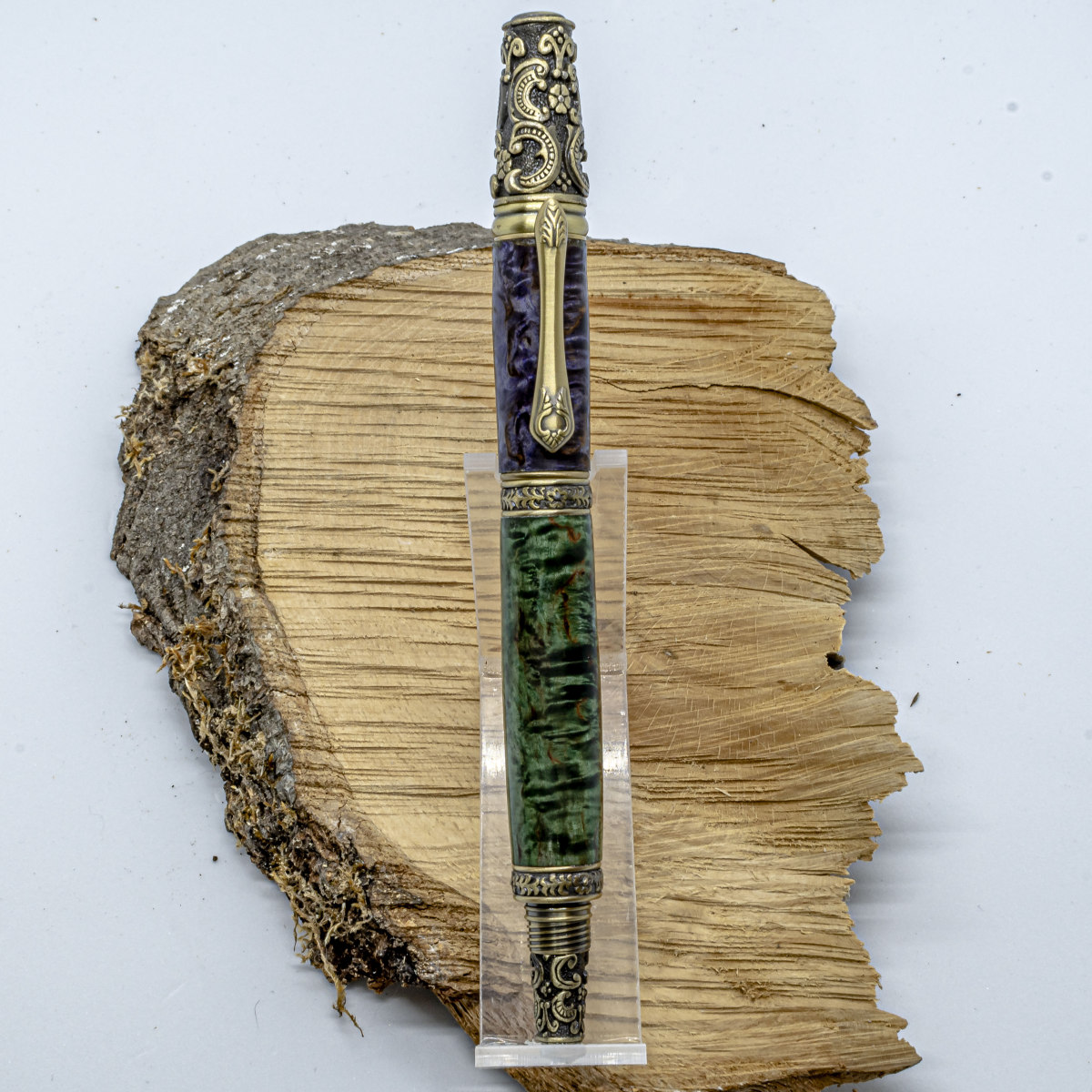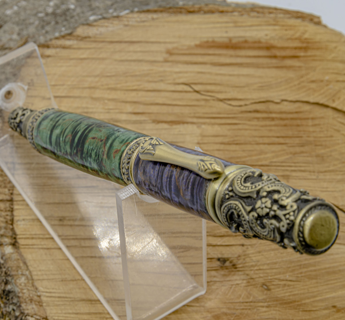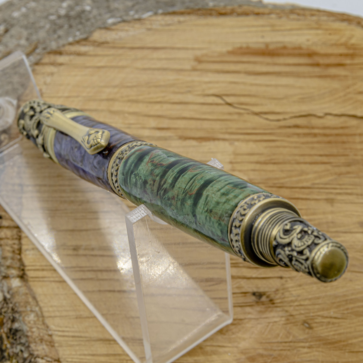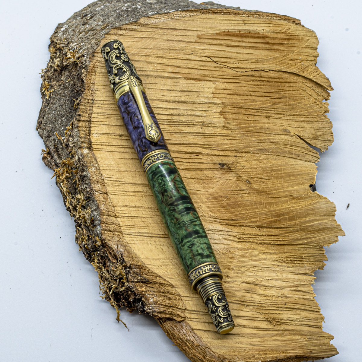 Holz: Karelische Maserbirke, stabilisiert, violett-grün.
